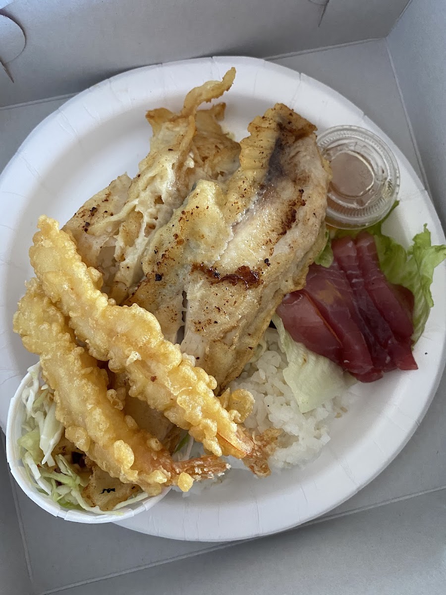 The menu highlights a blend of seafood and traditional Hawaiian plates. Notable picks include the Japanese Plate Deluxe, which combines fresh ahi sashimi with mochiko chicken, teriyaki beef, and shrimp tempura, catering to those who want a little bit of everything. Seafood options stand out too, especially the fresh Mahi Mahi Plate and the fresh Mahi Mahi sandwich served with tartar sauce and fries—comfort food with a touch of island ocean freshness. For hearty, local-style breakfasts, the Loco Moco and Spam & Egg plates offer familiar, satisfying flavors at gentle price points.